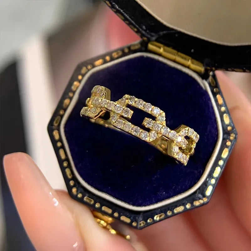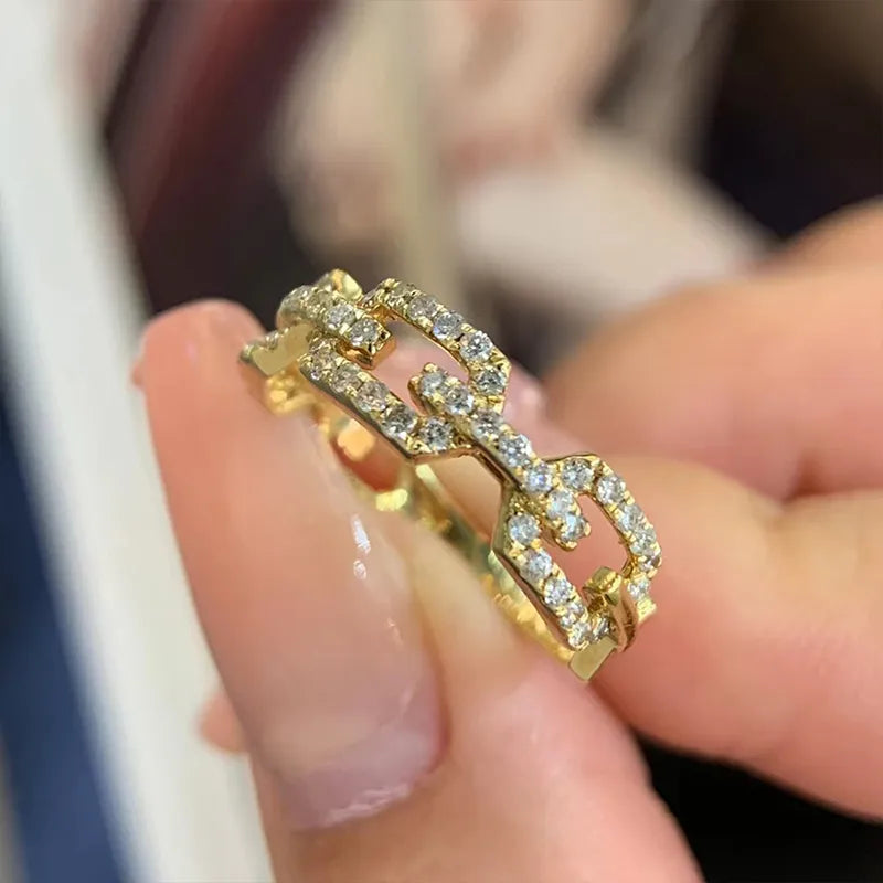 O anel Elos de Cristais foi elaborado com detalhes em ouro amarelo 18K lapidado a mão com cristais brilhantes, criando uma harmonia única e sofisticada. Os cristais selecionados cuidadosamente são embutidos e se destacam ao longo do anel. O resultado é um design rico e luxuoso.