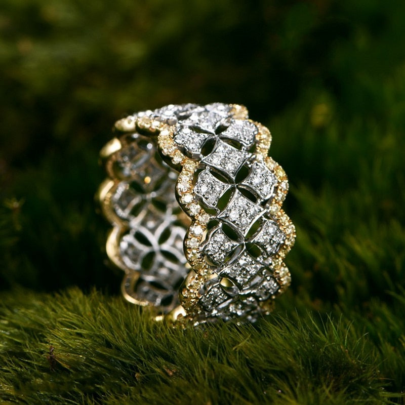 Este anel é feito à mão, com zircônia cúbica de alta qualidade, que resiste ao desgaste. O design exclusivo e único tem formas únicas e delicadas que o tornam um acessório elegante e charmoso.