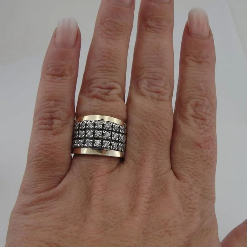 Este anel vintage dourado é composto por belos cristais. Seu design exclusivo combina brilho e elegância para criar um look verdadeiramente único. Seus detalhes delicados permitem que o brilho dos cristais seja visto de todos os ângulos. Experimente este anel moderno para adicionar sofisticação a qualquer look.