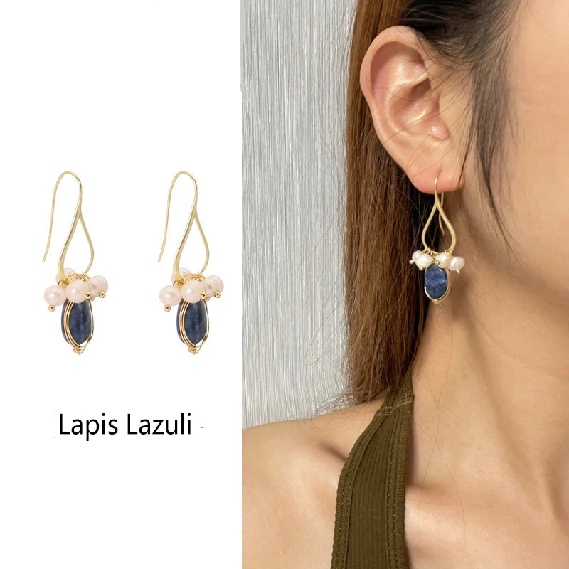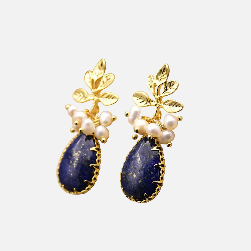 Brinco Lápis-Lazúli & Pérolas Naturais
