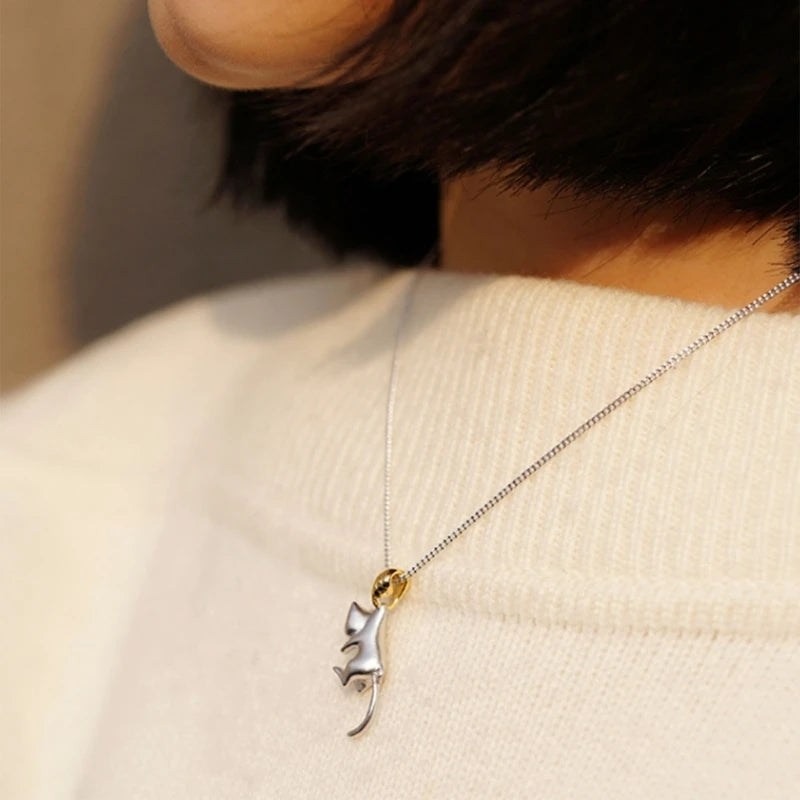Colar com pingente de gatinho em metal cobre, leve e confortável para uso diário. Seu design elegante na clavícula combina com qualquer ocasião, desde looks casuais até eventos formais.
